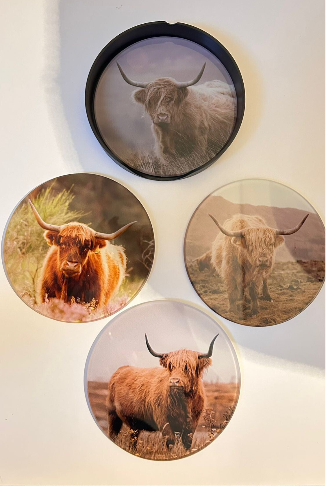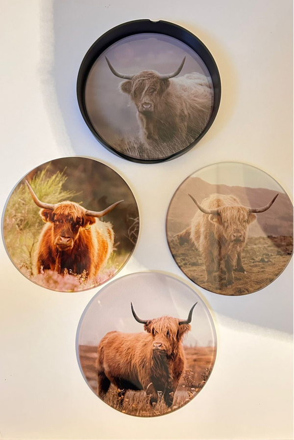 Glazen onderzetters (hooglander)